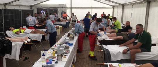 Our volunteers dedicate themselves to hundreds of events every year: festivals, running races, village festivals, concerts ... But where many people gather, the risk of accidents is high. After all, things happen quickly: a painful blister, a faint, a sunstroke, alcohol intoxication ... With a preventive aid station at concerts, sporting events and festivals, our volunteers can provide immediate care and help if something happens.